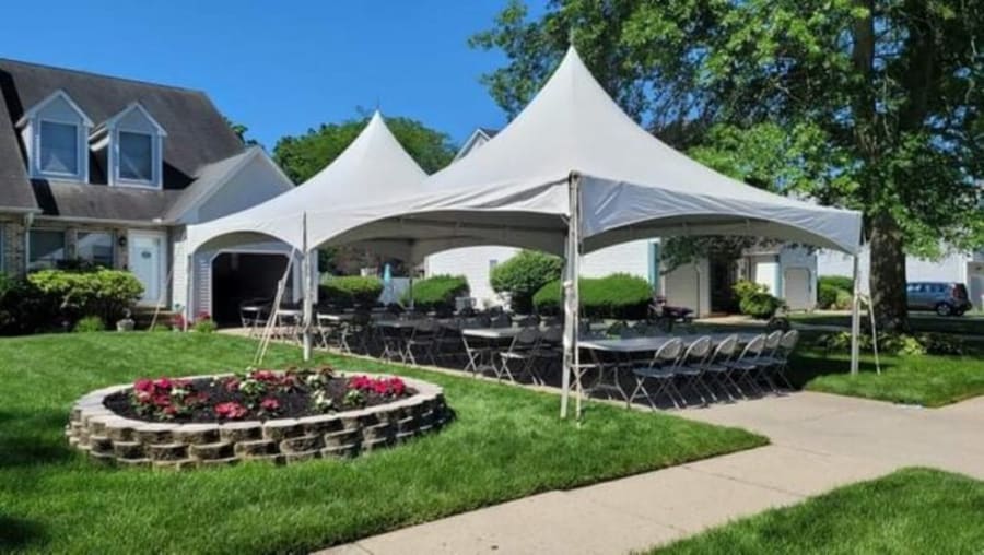 20x40 High Peak Frame Tent PKG. 72 Chairs/12 6ft. Tables