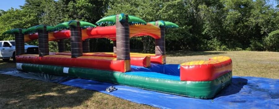 The Slip-N-Slide offers 2 lanes of pure fun and a POOL Landing. Watch the excitement on the faces of your guest as they RUN, DIVE, then Slip-N-Slide into the refreshing POOL water.